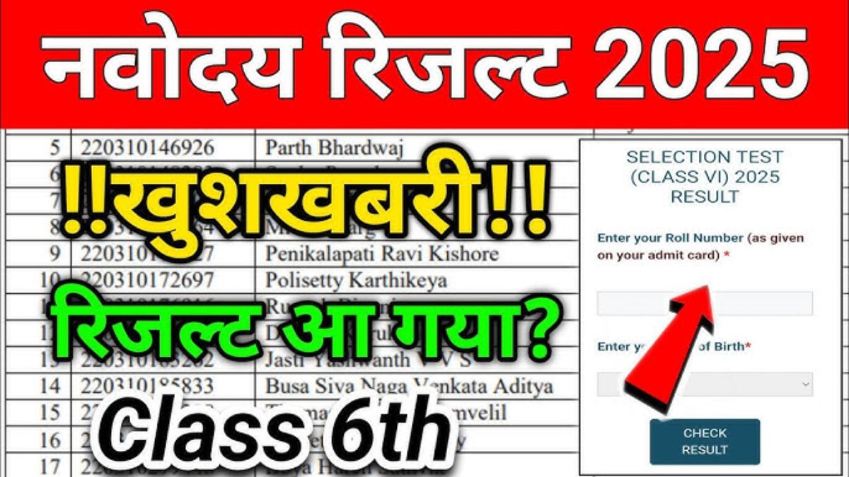 Navodaya Vidyalaya Class 6 Result 2025:Jawahar Navodaya Vidyalaya Selection Test (JNVST) भारत के ग्रामीण क्षेत्रों …