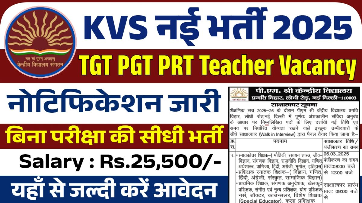 KVS Vacancy 2025केंद्रीय विद्यालय संगठन (KVS) ने वर्ष 2025 के लिए नई भर्ती का नोटिफिकेशन …